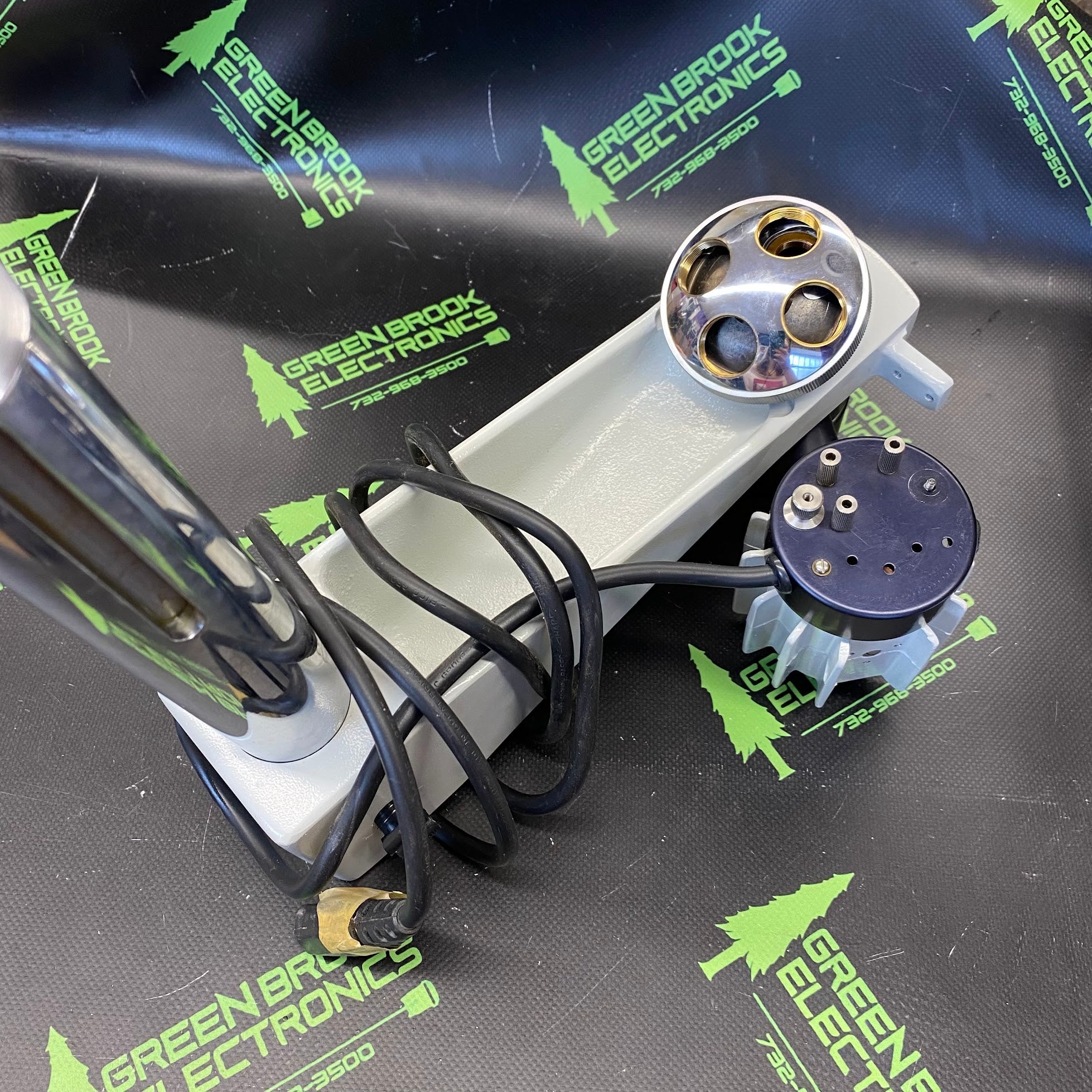 ARM AND OBJECTIVE REVOLVING TURRET FROM DYNASCOPE MICROSCOPE SYSTEM