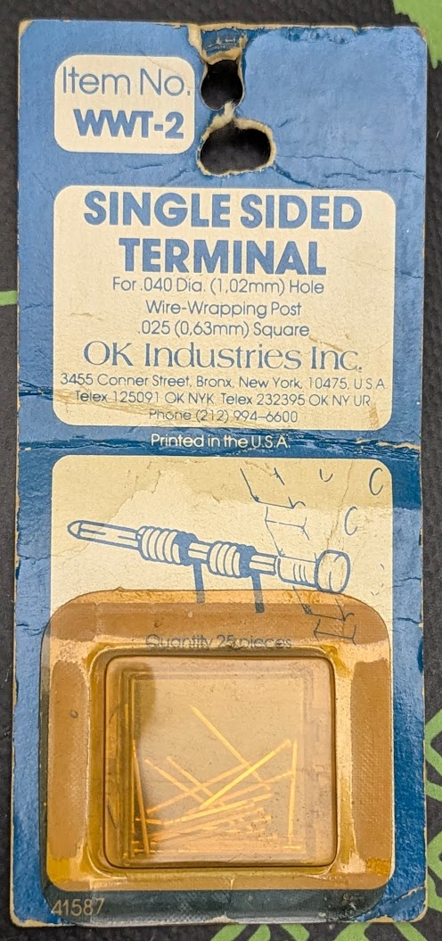 SINGLE SIDED TERMINAL FOR .040 DIA (1.02MM) HOLE - WIRE WRAPPING POST - .025 (0.63MM) SQUARE