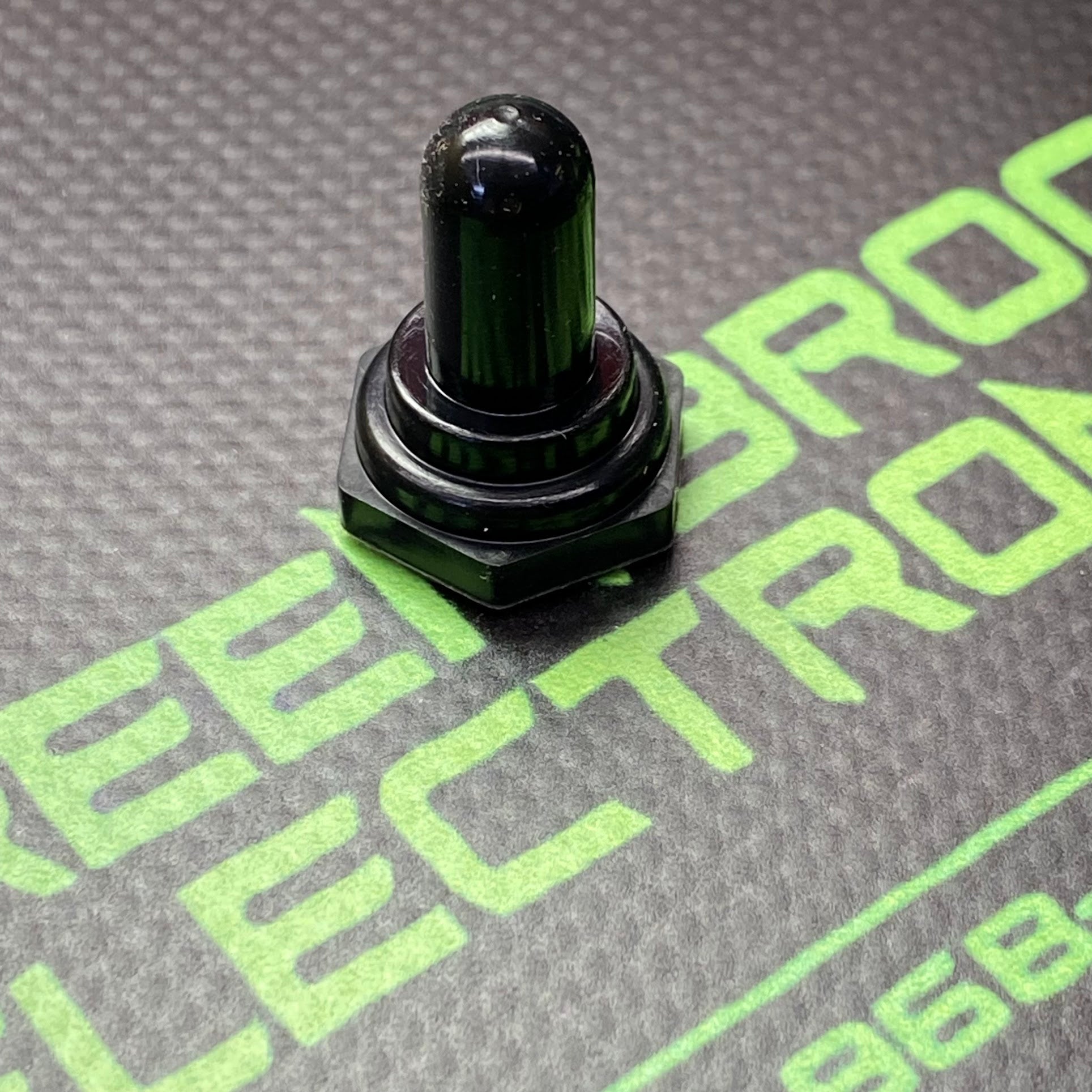 Rubber boot for a bat-handle toggle switch - Purpose: It is a hardware accessory designed to fit over a toggle switch with a bat handle.