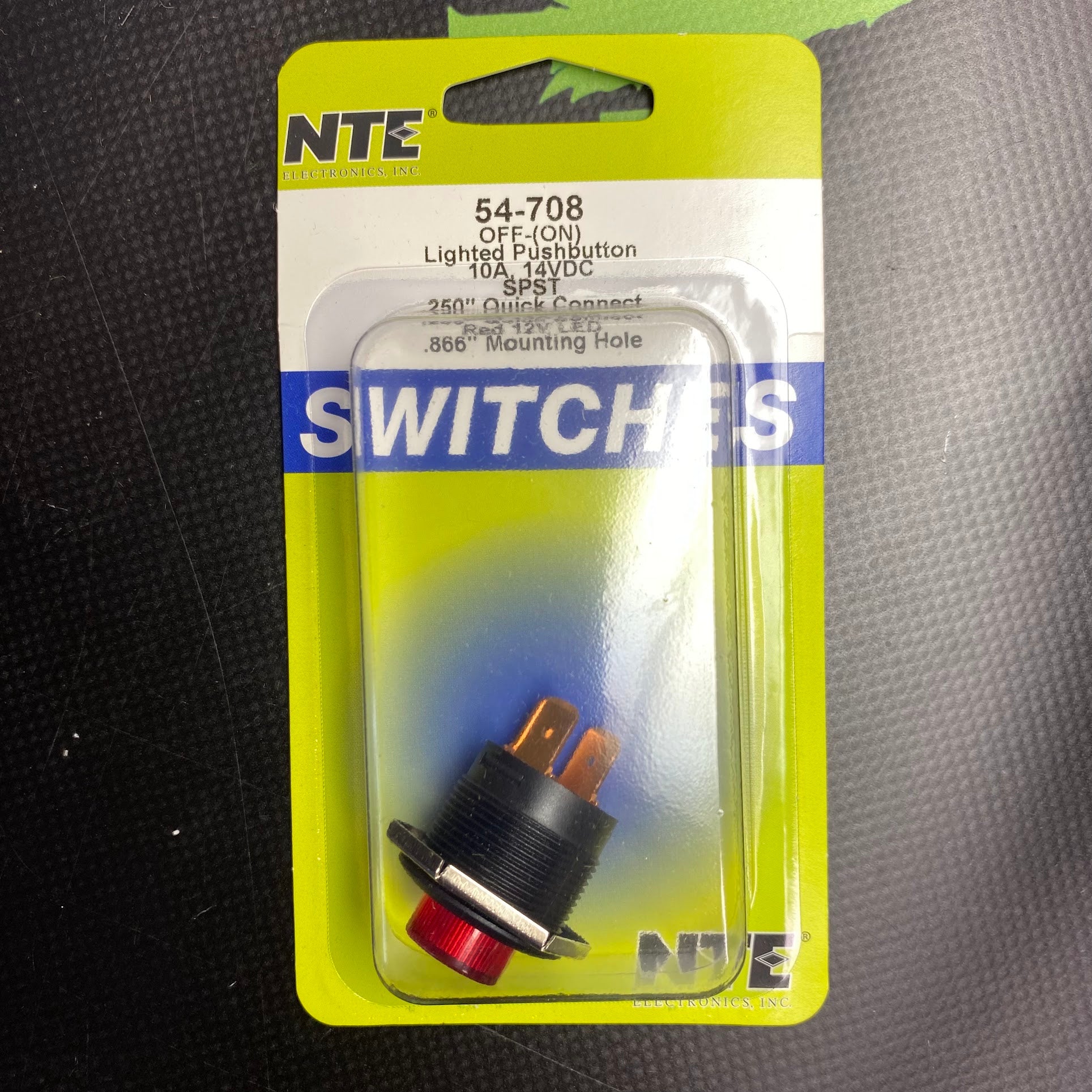 PUSHBUTTON SWITCH SPST OFF (ON) PC Red 12V B 10A 14VDC; 5A 24VDC